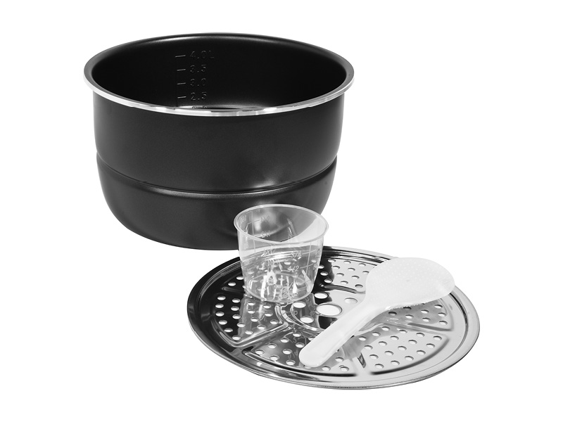 Мультиварка-скороварка MP5025PSD с большой 5-литровой чашей с антипригарным покрытием идеально подойдет как для большой семьи, так и для тех, кто любит принимать у себя гостей. С ее помощью вы легко может варить, тушить, томить, жарить, готовить на пару, выпекать, а кроме этого варить вкусный джем, варенье или готовить йогурты. В приборе предусмотрено 18 автоматических программ, 11 из которых используются с давлением. Мультиварка оснащена электронным управлением, которое осуществляется легким прикосновением. Имеется таймер отложенного старта на 24 часа и возможность поддержания тепла в течение 12 часов. В комплектации есть ложка для помешивания, мерный стаканчик и пароварка для диетических блюд.