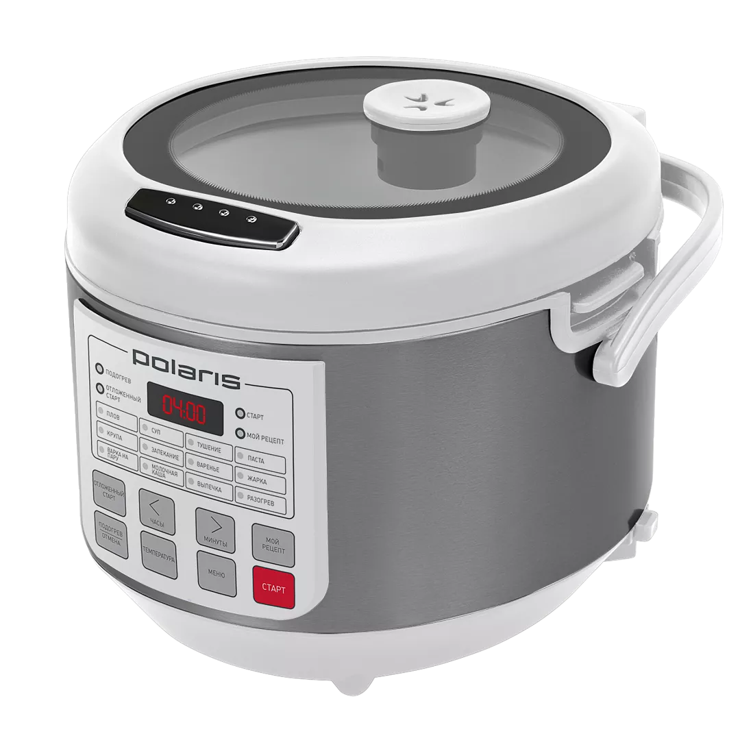 Режимы работы: Мой рецепт, Плов, Суп, Тушение, Паста, Крупа, Запекание, Варенье, Жарка, Варка на пару, Молочная каша, Выпечка, Разогрев.