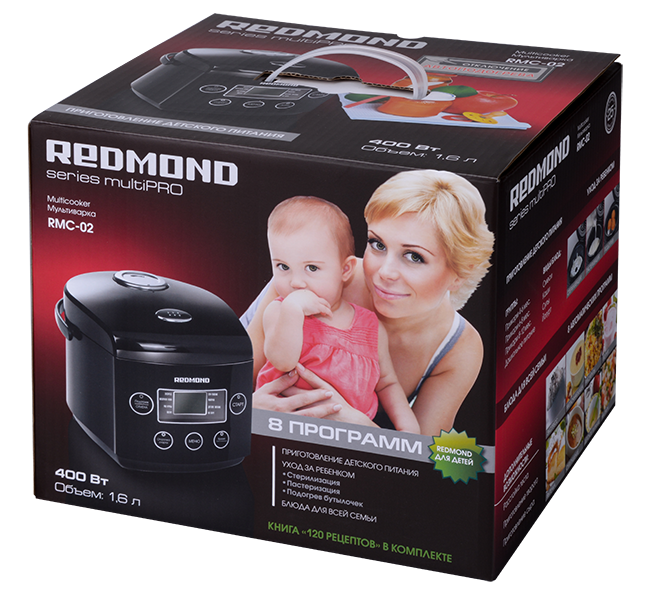 Мультиварка Redmond RMC-02 - маленькая, компактная, небольшая помощница на кухне. Её удобно брать с собой в дорогу - на дачу, в командировку, в путешествие.