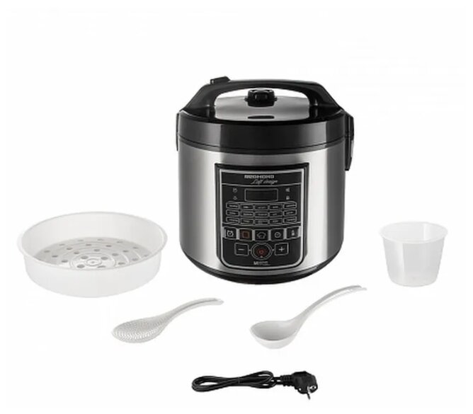 плоская ложка, контейнер для приготовления на пару, книга рецептов, черпак, мерный стакан