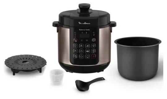 Комплектация: мультиварка, чаша, книга рецептов, мерный стакан, ложка, вставка для приготовления на пару