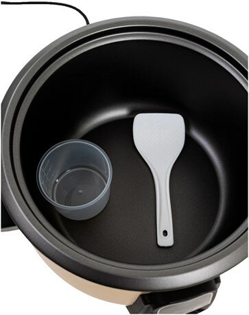 В комплект поставки входят ложка для риса и мерный стакан объёмом 160 мл.