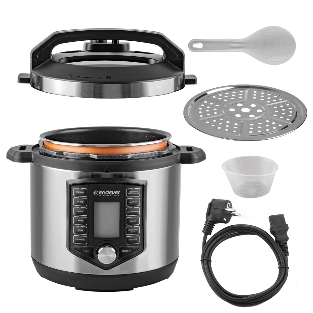 Вы получите все необходимые аксессуары в комплекте с нашей скороваркой: ложку и мерный стакан для удобства приготовления, а также контейнер-пароварку, расширяющую возможности приготовления пищи.