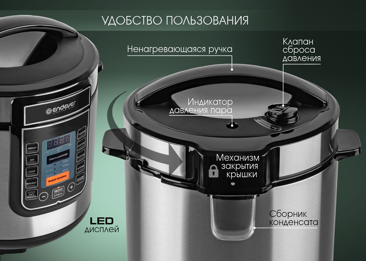 Мы также позаботились о вашей безопасности. Наша скороварка оборудована защитой от перегрева, что предотвращает возможные неприятности.