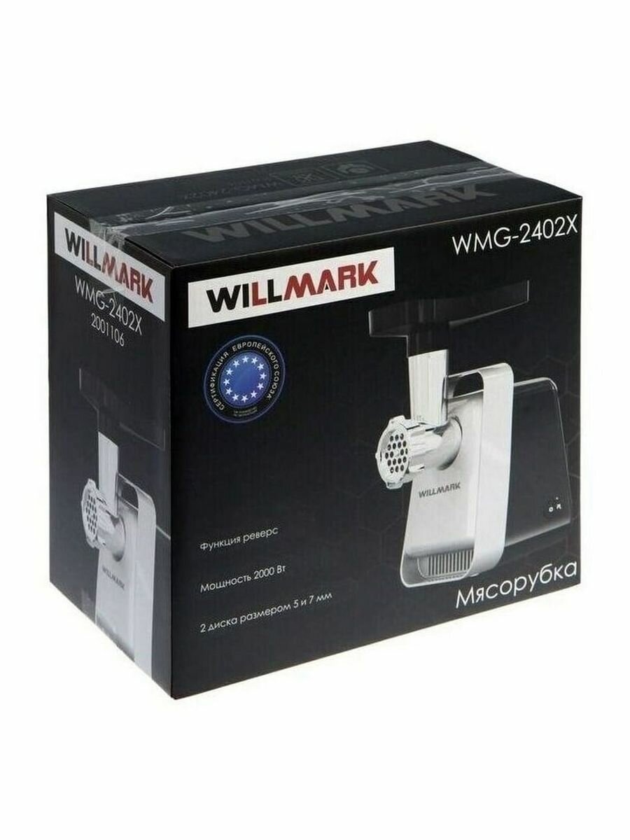 Мясорубка WILLMARK WMG-2402X используется для приготовления фарша из куриного филе, свинины, говядины. С помощью сменных металлических решеток с диаметром отверстий 3,4 мм и 7 мм удобно контролировать консистенцию. При необходимости модель можно использовать для формирования домашних колбасок и кеббе, получения сока из овощей или фруктов. Нож имеет качественную заводскую заточку и устойчив к появлению коррозии при контакте с соком продуктов. Производительный двигатель позволяет за минуту получить до 1,3 кг фарша.
