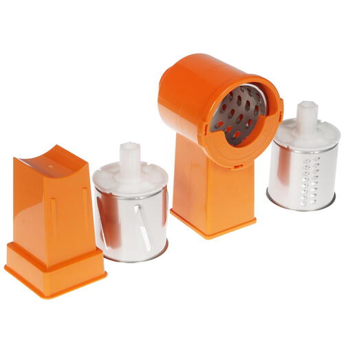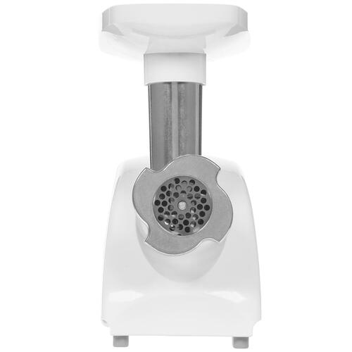 Комплектация насадка для шинковки, приставка-овощерезка, загрузочный лоток, толкатель, нож из нержавеющей стали, 2 насадки-терки, крышка-миска, 2 перфорированных диска для фарша на 5 мм и 7 мм, пластмассовый предохранительный колпачок