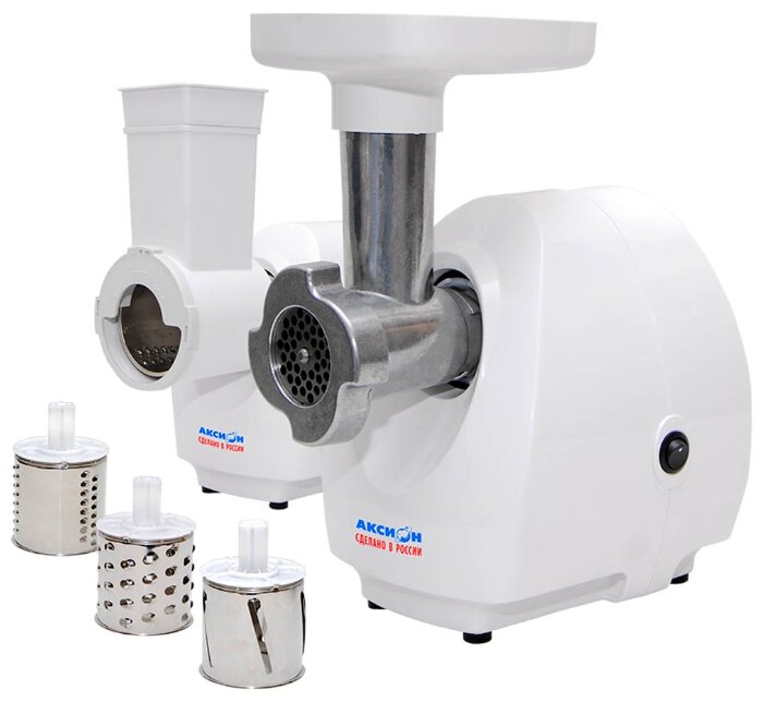Аксион М 25.03 - хорошая, надежная и простая в использовании, экономичная мясорубка повышенной мощности. Предназначена для приготовления фарша из мяса, рыбы, грибов; измельчения овощей, фруктов, профилирования теста. Электрическая мясорубка «Аксион» М 25.03:- износостойкий нож, изготовленный из высококачественной хромистой стали, имеет саблевидные режущие кромки, которые обеспечивают плавность работы мясорубки и повышают качество переработки продукта;- специальная конструкция шнековой камеры со спиральными направляющими и переменным шагом шнека обеспечивает оптимальную подачу продукта для создания наилучших условий резания даже низкосортного мяса;- пластмассовый предохранительный колпачок защищает электродвигатель и редуктор привода от поломки при случайном попадании костей;- высокое расположение шнековой камеры позволяет использовать глубокую чашку для фарша- прочный литой нож из нержавеющей стали не требует заточки длительное время;- все детали, контактирующие с пищей, изготовлены из экологически чистых материалов.Максимальная мощность1500 Вт. Номинальная потребляемая мощность 230Вт. Реверс - нет. Производительность1,66 кг/мин. Материал - пластик. Габаритные размеры 0,32 х 0,18 х 0,32м. Вес 4,6 кг.Набор из 2 решеток с отверстиями диаметром 5 мм и 7 мм, что позволяет делать фарш мелкой и средней нарубки. Литой нож из нержавеющей стали. Приставка "кеббе" и приставка для набивки колбас. Предназначена для изготовления колбасных изделий. Приставка-овощерезка с четырьмя сменными барабанами, предназначена для резки резки продуктов ломтиками, мелкого, среднего и крупного шинкования. Четыре разных типа терок позволят быстро нашинковать овощи для определенного блюда. Приставка для нарезки овощей станет незаменима. Наличие в наборе толкателя обеспечивает безопасность при работе с различными типами продуктов.