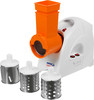 Дополнительные насадки: насадка-овощерезка с четырьмя сменными барабанами. насадка-соковыжималка (предназначена для получения соков с мякотью из мягких овощей, фруктов, ягод; набивки колбасных изделий)