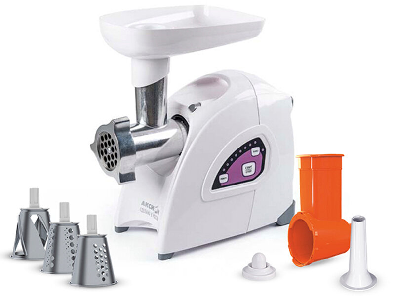 Мясорубка Аксион М 642.03, белая (316147) предназначена для применения в организациях общественного питания и домашних условиях. Модель экономит время пользователя при измельчении твердых продуктов. Две металлические решетки в комплекте оптимальны для приготовления фарша разной консистенции. Благодаря дополнительным насадкам можно применять устройство для нарезания овощей, формирования колбасок и кеббе. Если в шнек попадает прожилка, кожица или косточка, реверсивный ход помогает пользователю извлекать содержимое не разбирая модель.