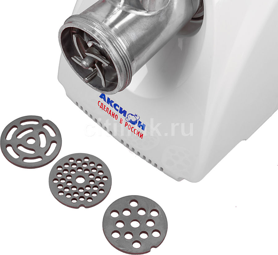 Вам нужен простой и удобный в использовании агрегат, который бы выполнял много функций и не занимал много места на кухне? Тогда мясорубка АКСИОН М 31.01 – это то, что вам нужно. Очень продуманный эргономичный дизайн. Шнур питания и все насадки можно хранить в специальных отсеках в корпусе. Все съемные части выполнены из пластика и легко моются. Прорезиненные ножки не дают мясорубке скользить по поверхности даже при интенсивной работе. Мясорубка АКСИОН М 31.01 имеет в комплекте три диска, перфорированных, для приготовления фарша разной степени помола. Самый мелкий отлично подойдет для приготовления паштетов и овощных, а также фруктовых масс. Решетка с отверстиями разной величины и формы значительно упрощает работу устройства. Производительность мясорубки – 1,6 кг в минуту. Это поможет хозяйкам сэкономить время для общения с родными.