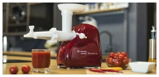 насадка-соковыжималка для мягких овощей, фруктов и ягод; материал лотка: пластик; количество насадок-терок: 2; количество насадок для шинковки: 1