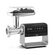 Моторный блок, блок мясорубки, шнек мясорубки, нож мясорубки, фиксирующее кольцо, перфорированные диски для различных видов фарша (2 шт.), загрузочный лоток, крышка загрузочного лотка, система хранения насадок, толкатель, основание насадки для кеббе и колбасок, формирующая насадка для приготовления кеббе, формирующая насадка для приготовления колбасок, блок овощерезки, толкатель овощерезки, крупная терка, терка для драников, шинковка, шнек соковыжималки, насадка-соковыжималка с фильтром и регулятором выхода жмыха, защитная крышка фильтра соковыжималки, лоток для выхода сока, приспособление для очистки дисков мясорубки, бургер-пресс, руководство по эксплуатации,