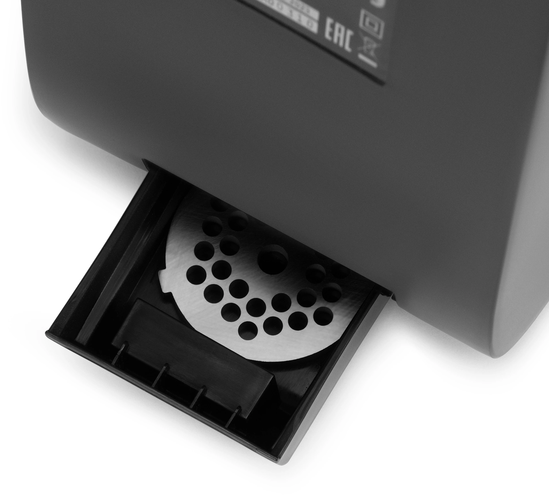 Две решетки для фарша. Наличие в комплекте двух перфорированных решеток с отверстиями диаметром 5 и 7 мм обеспечивает возможность приготовления фарша необходимой фракции для различных блюд.