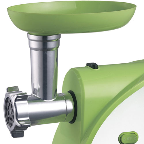 перерабатывает 1.5 кг/мин, насадка для приготовления колбас, насадка для кеббе, диск для фарша, корпус из пластика