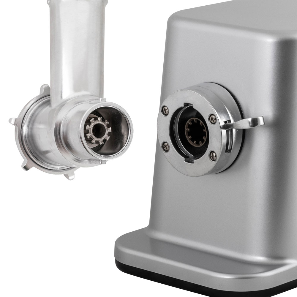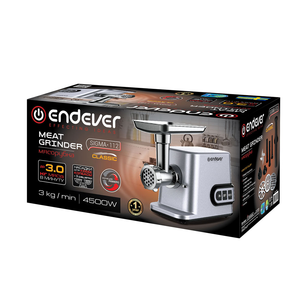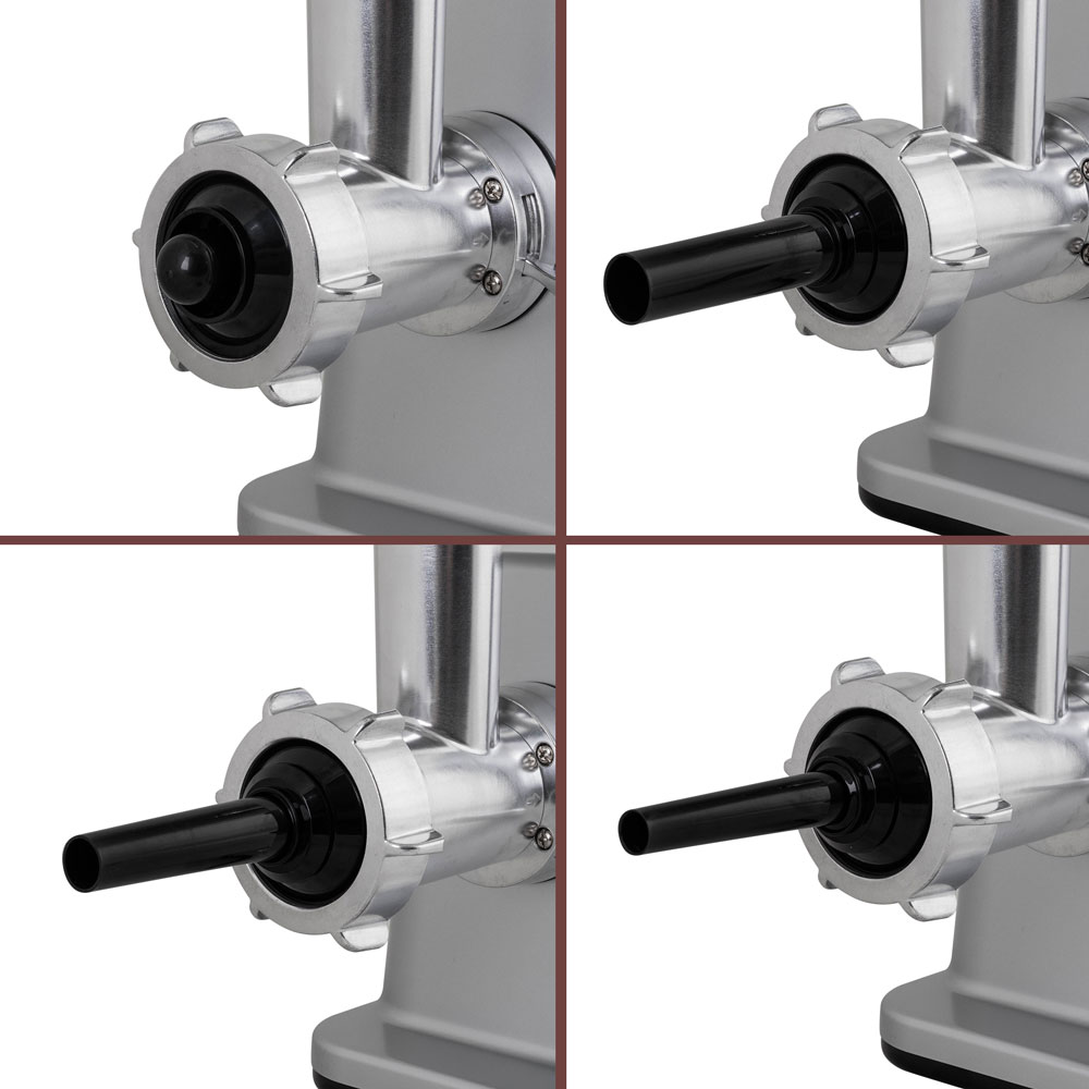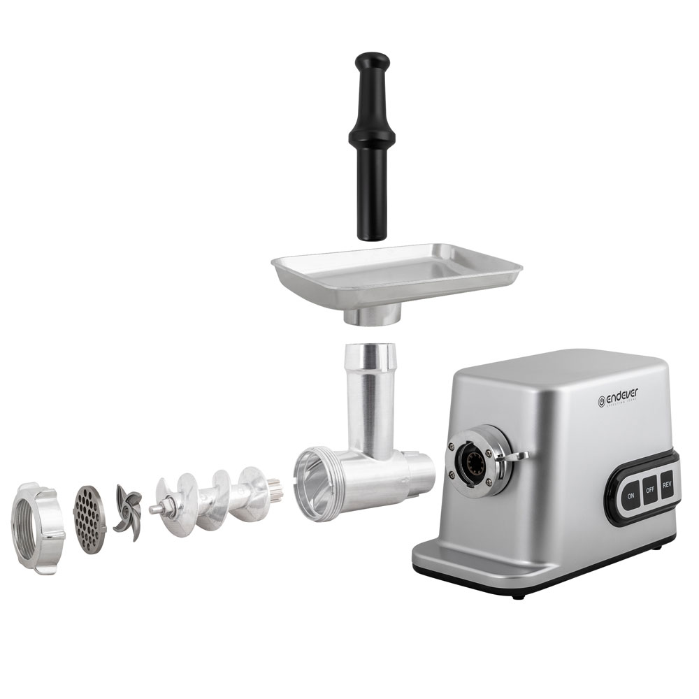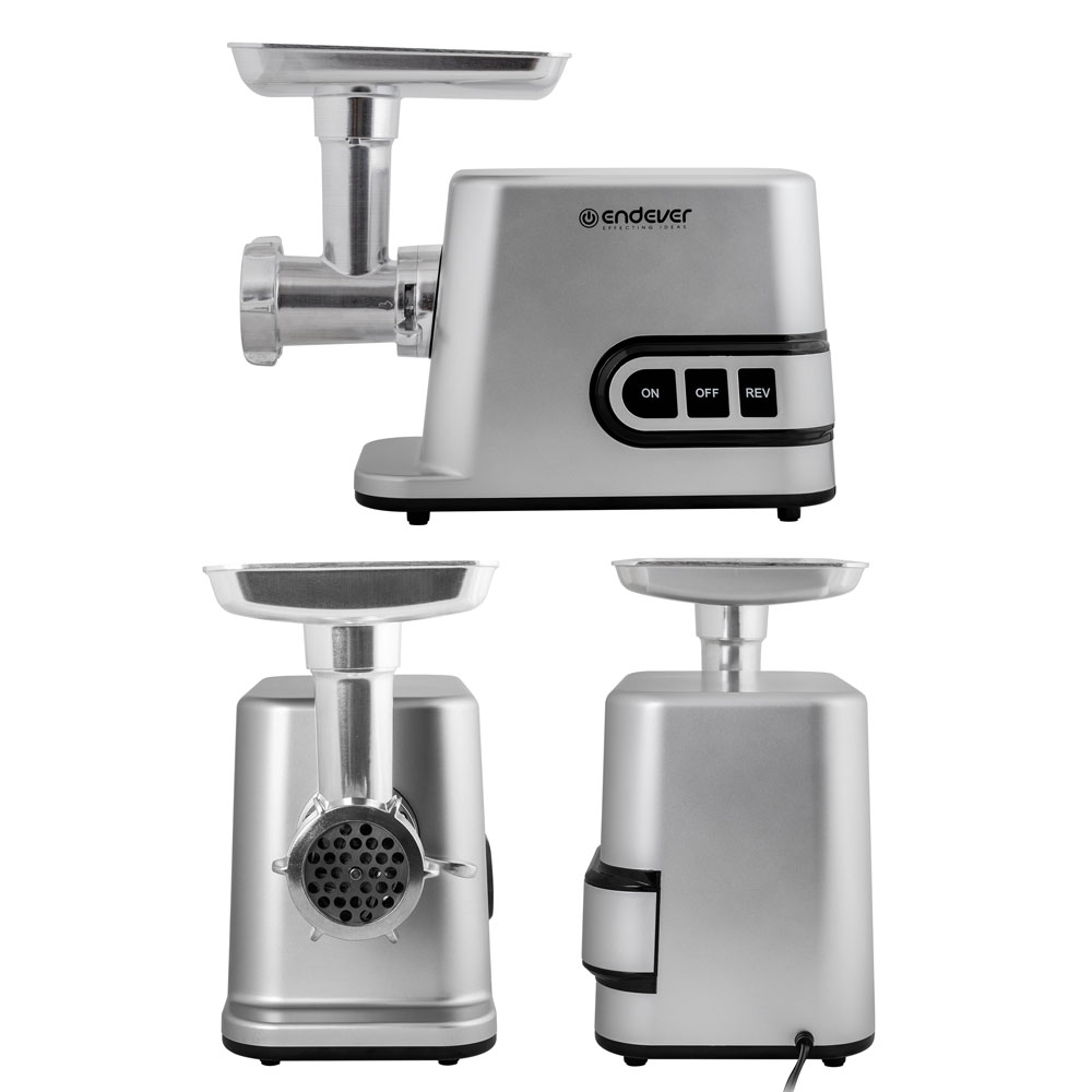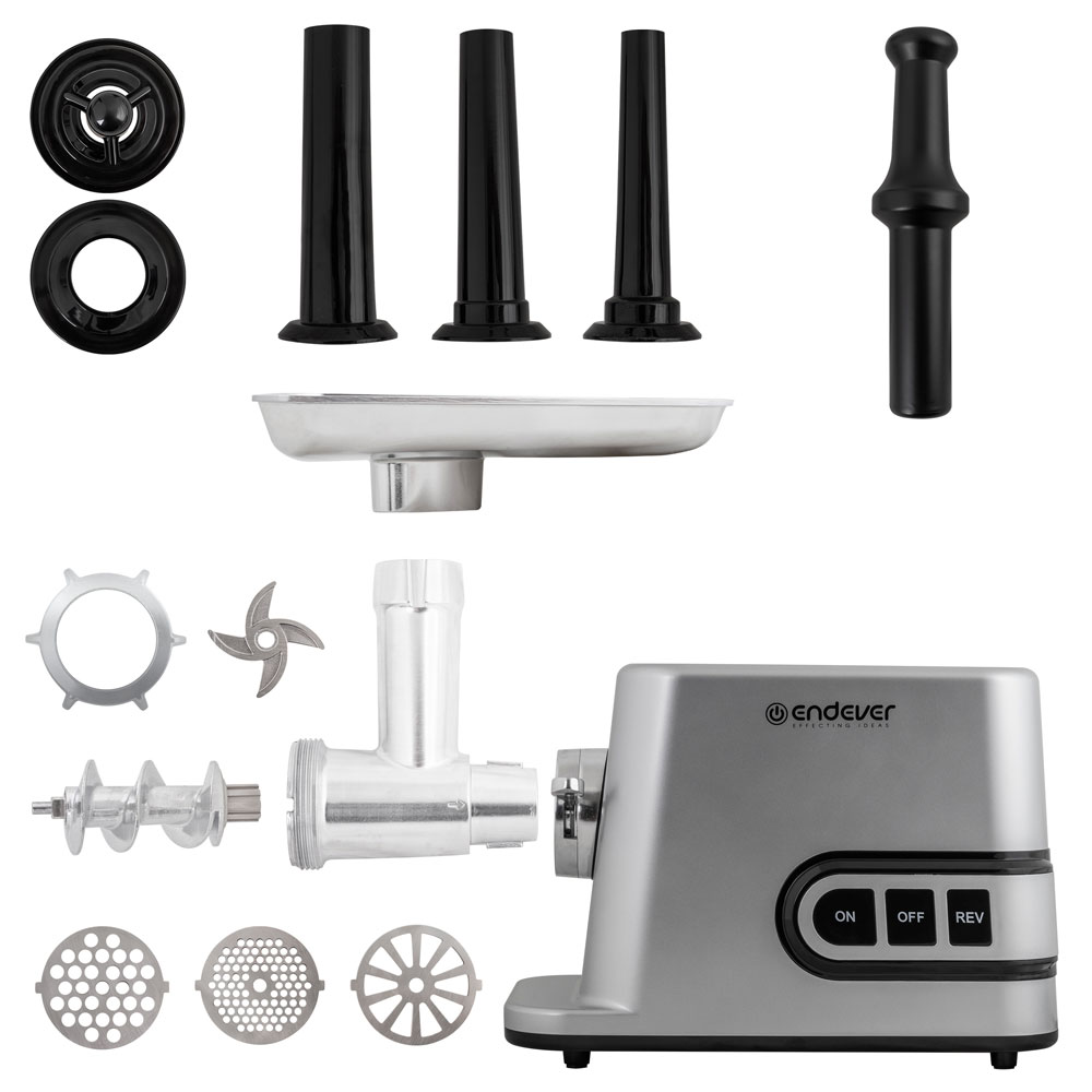 Диаметр выводящего отверстия: 65 мм, Функция реверса, Мощный двигатель, Защита от перегрева, Металлический загрузочный лоток, Нескользящие прорезиненные ножки, Комплект для приготовления колбас и кеббе, Устойчивость при работе