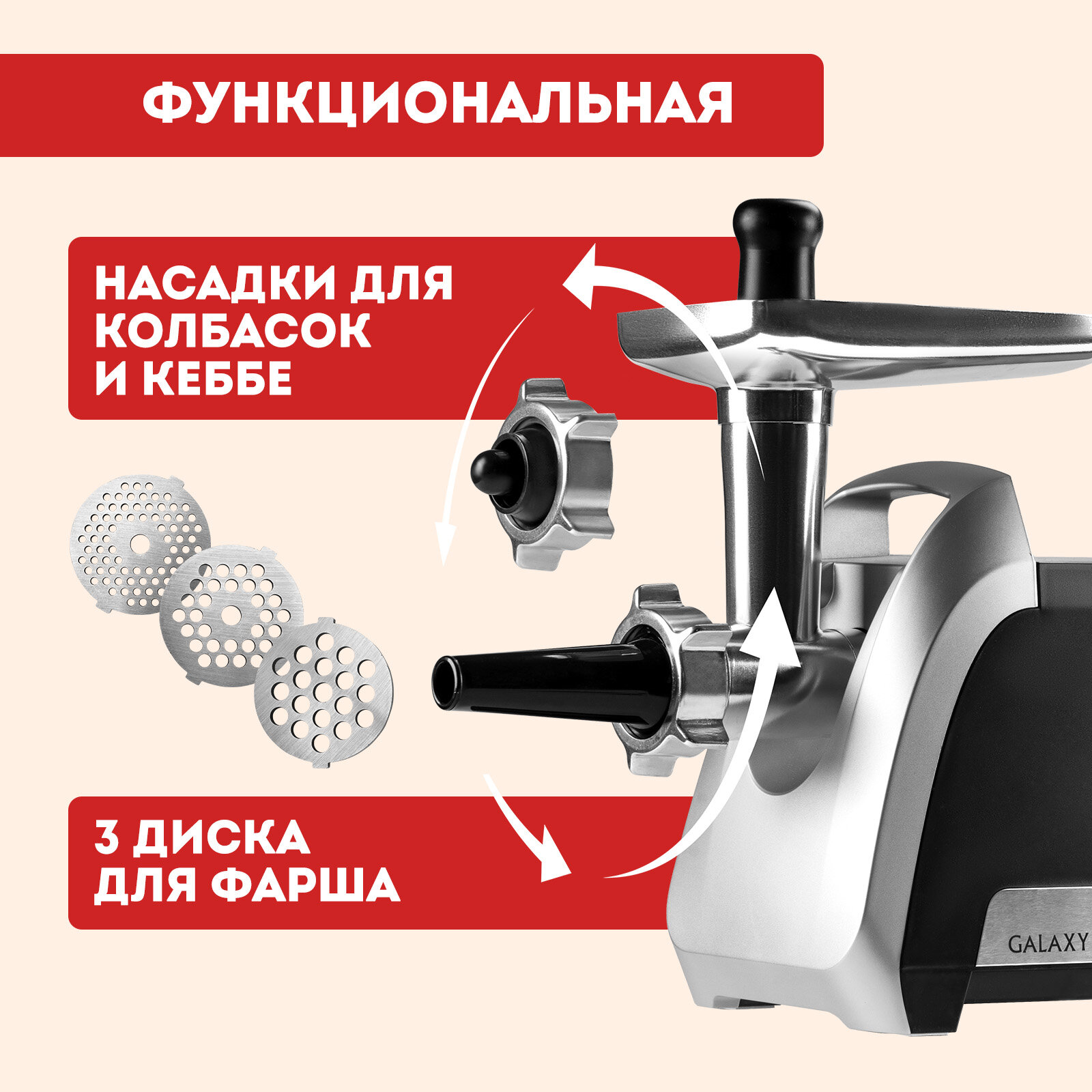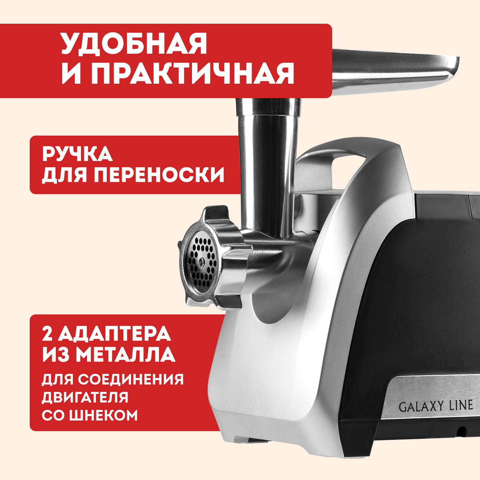 Электрическая мясорубка Galaxy LINE GL 2422 — это мощный и надежный прибор, который позволяет быстро и эффективно перерабатывать до 2,6 кг мяса в минуту. Благодаря функции «Реверс», мясорубка легко справляется с застрявшими кусками, предотвращая остановки работы. В комплекте идет 3 диска для фарша разной степени измельчения (3 мм, 5 мм и 7 мм), а также насадки для приготовления колбасок и кеббе, что делает прибор многофункциональным. Металлический лоток и защита двигателя от перегрузки обеспечивают долговечность и безопасность использования.