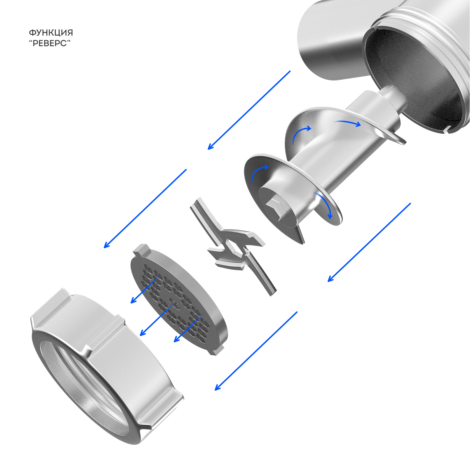 В мясорубке используется литой нож повышенной прочности, острота которого сохраняется долгие годы.