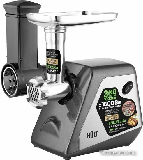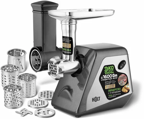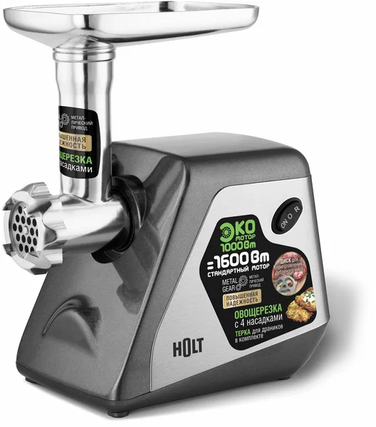 Мясорубка оснащена новым высокоэффективным ЭКО мотором, потребляющим 1000 Вт при максимальной нагрузке и выдающим мощность равную 1600 Вт обычного мотора.