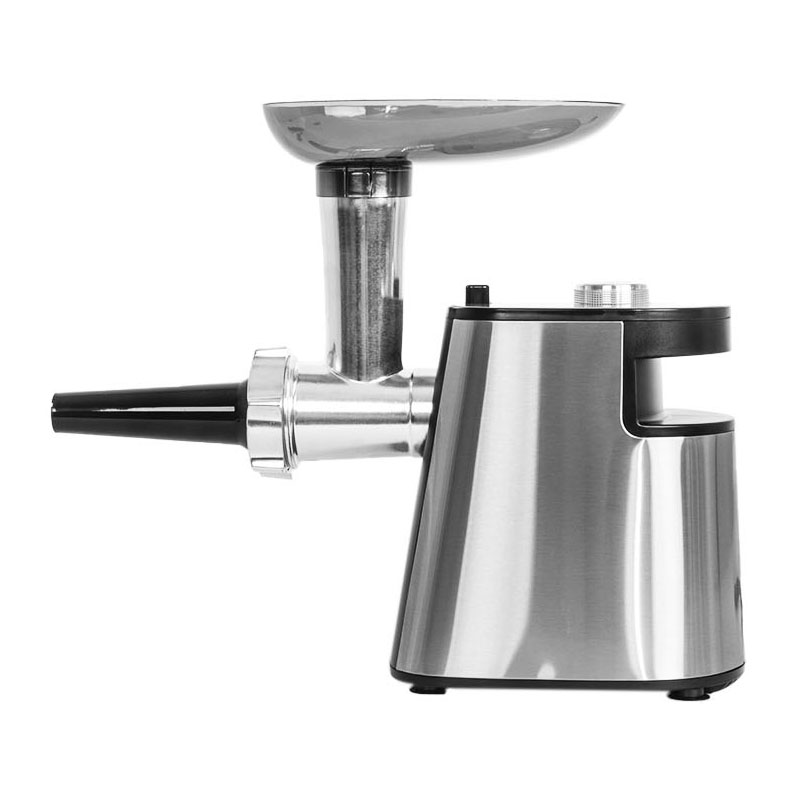 Полная комплектация мясорубка, решетки, насадки для приготовления колбасок и кеббе, толкатель, гарантийный талон, инструкция на русском языке