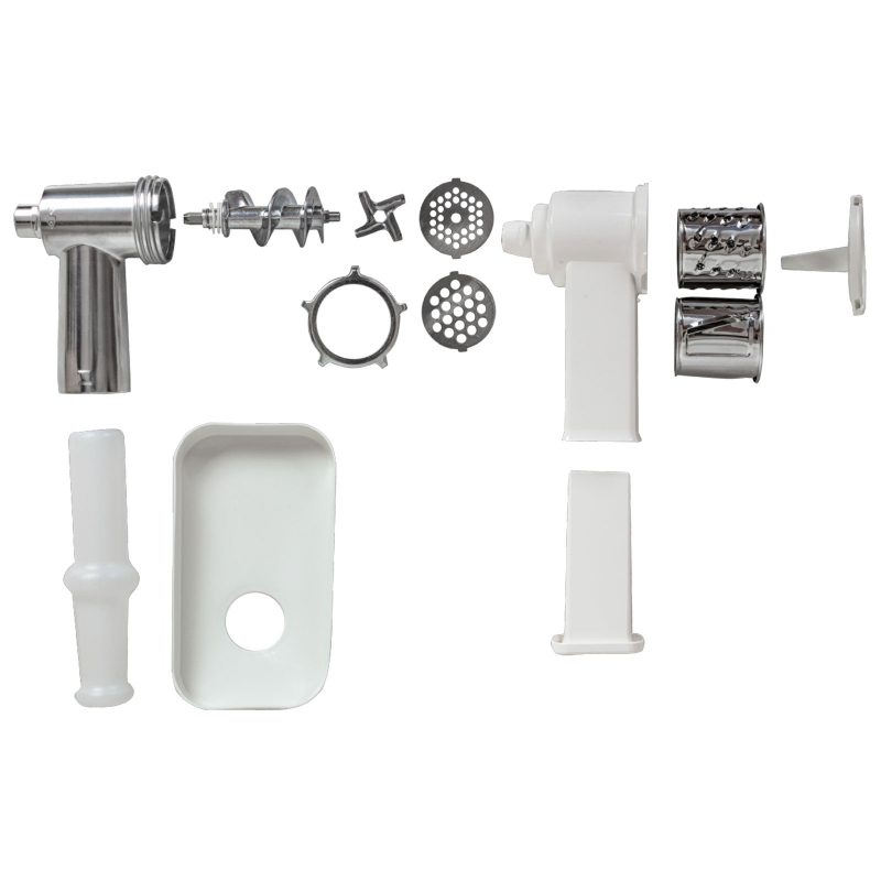 Полная комплектация мясорубка, насадки-овощерезки, гарантийный талон, инструкция на русском языке