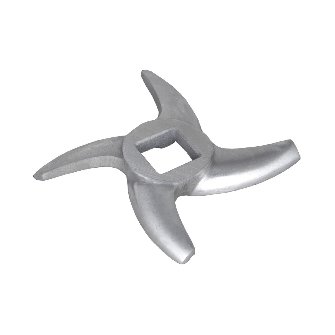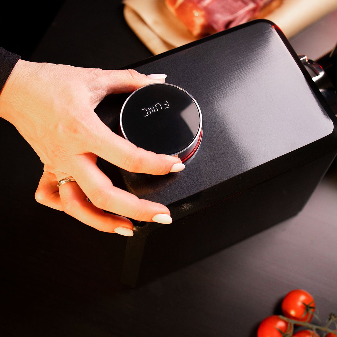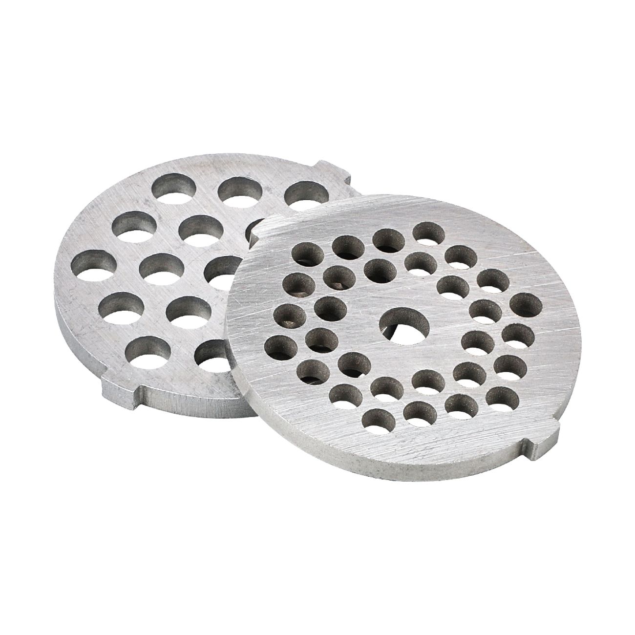 Электромясорубка поставляется в комплекте с толкателем, двумя решетками с диаметром отверстия 5 и 8 м, шестью насадками, включающими терку, кеббе, соковыжималку, шинковку и насадку для приготовления колбас. Корпус, лоток и шнек изготовлены из алюминия, нож — из нержавеющей стали. Прибор автоматически выключается при перегреве, что позволяет избежать аварийных ситуаций. Сенсорное управление и пять программ работы делают использование электромясорубки максимально удобным и простым.