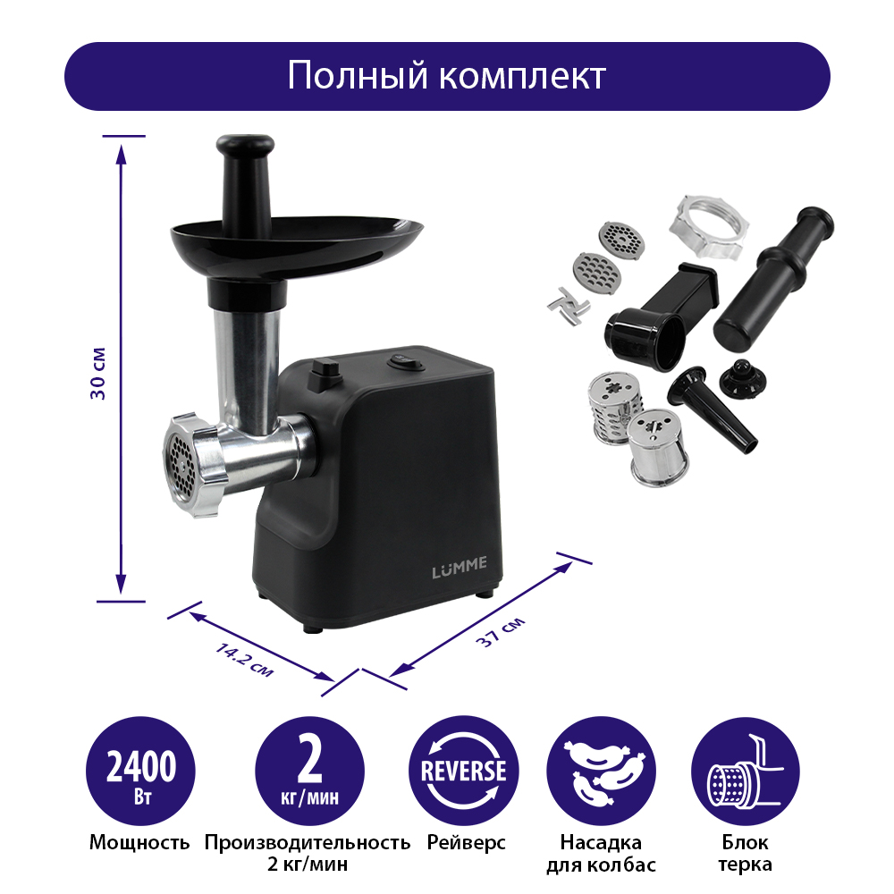 Мясорубка оснащена надежным, мощным электродвигателем с низким уровнем шума.