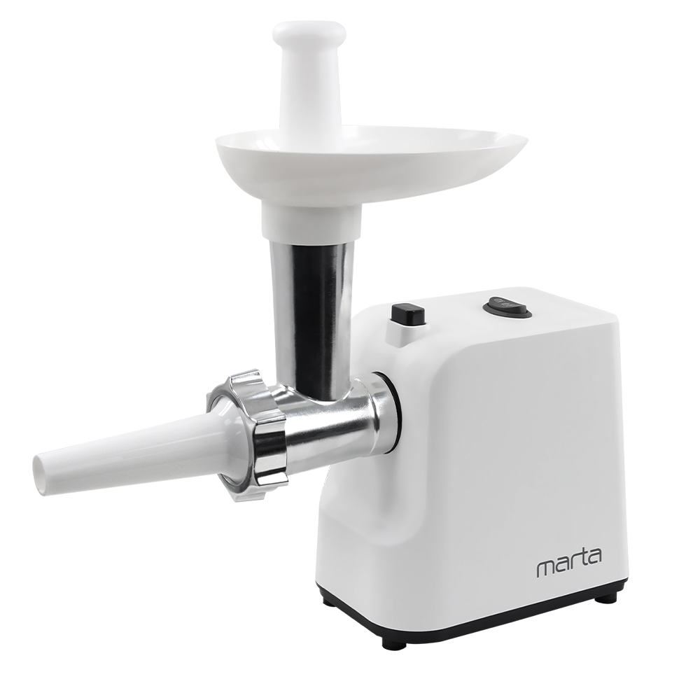 В мясорубке предусмотрена система защиты от перегрузки, что позволяет измельчать любые продукты, а также гарантирует ее работоспособность даже при попадании внутрь случайных предметов, защищая от заклинивания и преждевременного выхода из строя.