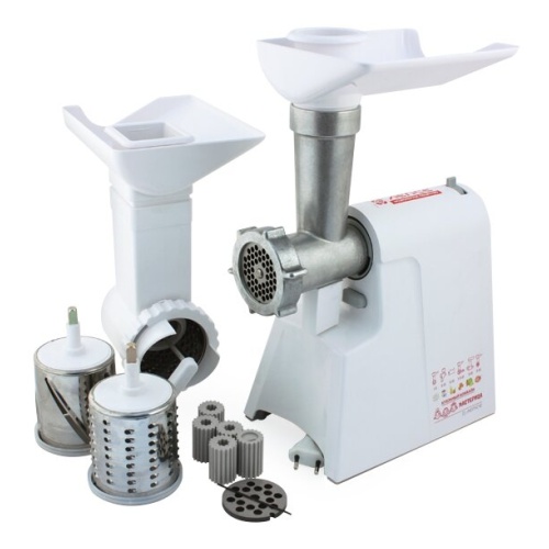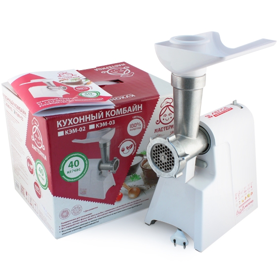 Мясорубка Мастерица КЭМ-02 будет отличным дополнением к набору бытовой техники для кухни. Модель практична и функциональна в использовании, подходит для приготовления различного по степени измельчения мясного фарша. Мясорубку также можно использовать для натирания и шинкования продуктов.