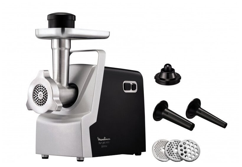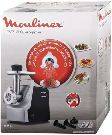 Мясорубка Moulinex ME 546810 характеризуется высокой мощностью при блокировке вала. Благодаря устройству можно приготовить более 4 кг фарша в течение минуты. Для безопасной повседневной эксплуатации предусмотрена система защиты от перегрева. За счет этого модель не подвержена поломке при долгом непрерывном функционировании. Готовить деликатесные колбасы можно благодаря специальным насадкам из комплекта. Получать фарш разной консистенции позволяют дополнительные металлические решетки с отверстиями диаметром 3 мм, 4,7 мм и 7,5 мм.