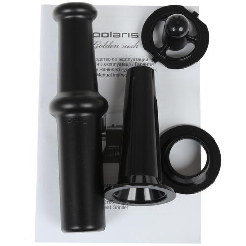 Комплектация 2 перфорированные решетки с отверстиями 5 и 7 мм, насадка для кеббе, насадка для колбас, документация, толкатель, загрузочный лоток