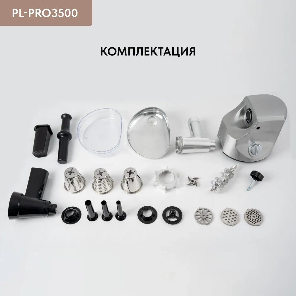 диск/решетка для фарша (3 шт.), для «кеббе», для домашней колбасы (3 шт.), для шинковки, терка (2 шт.)