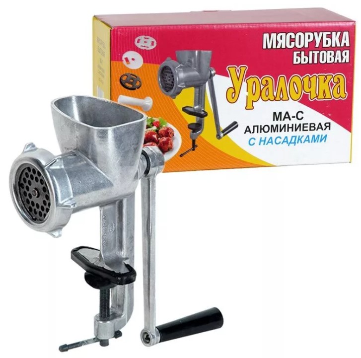 Ручная мясорубка Уралочка МА-С - устройство, необходимое для того, чтобы перекрутить и измельчить мясо, рыбу, овощи, и любые другие продукты. Чаще всего мясорубка используется для переработки крупных и мелких кусков мяса и получения мясного фарша. Из фарша можно приготовить множество популярных и всеми любимых вкусных блюд, таких как котлеты и тефтели.