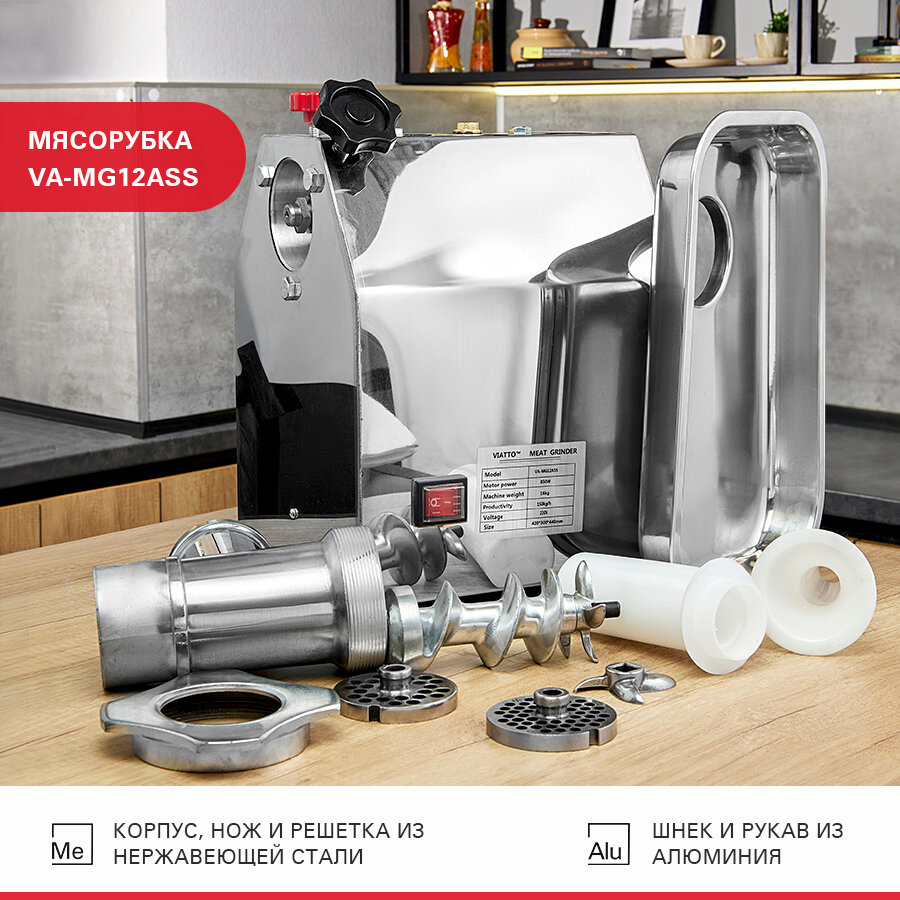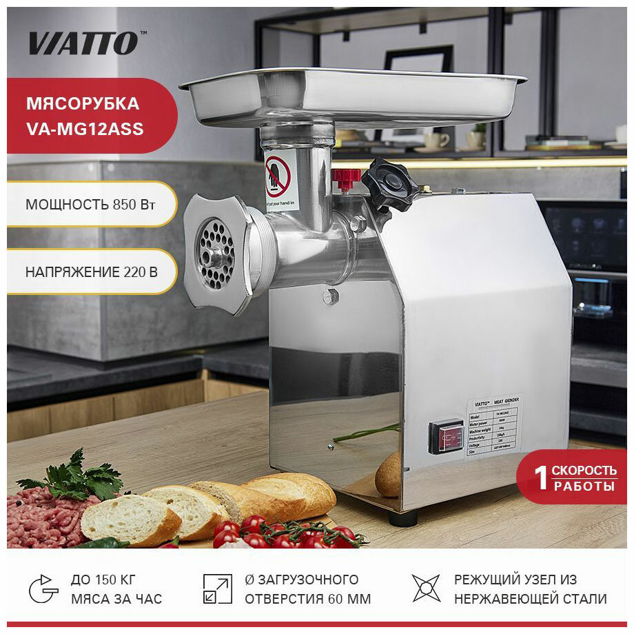 Мясорубка Viatto VA-MG12ASS 164285 используется на предприятиях общественного питания и торговли для получения различных видов фарша.