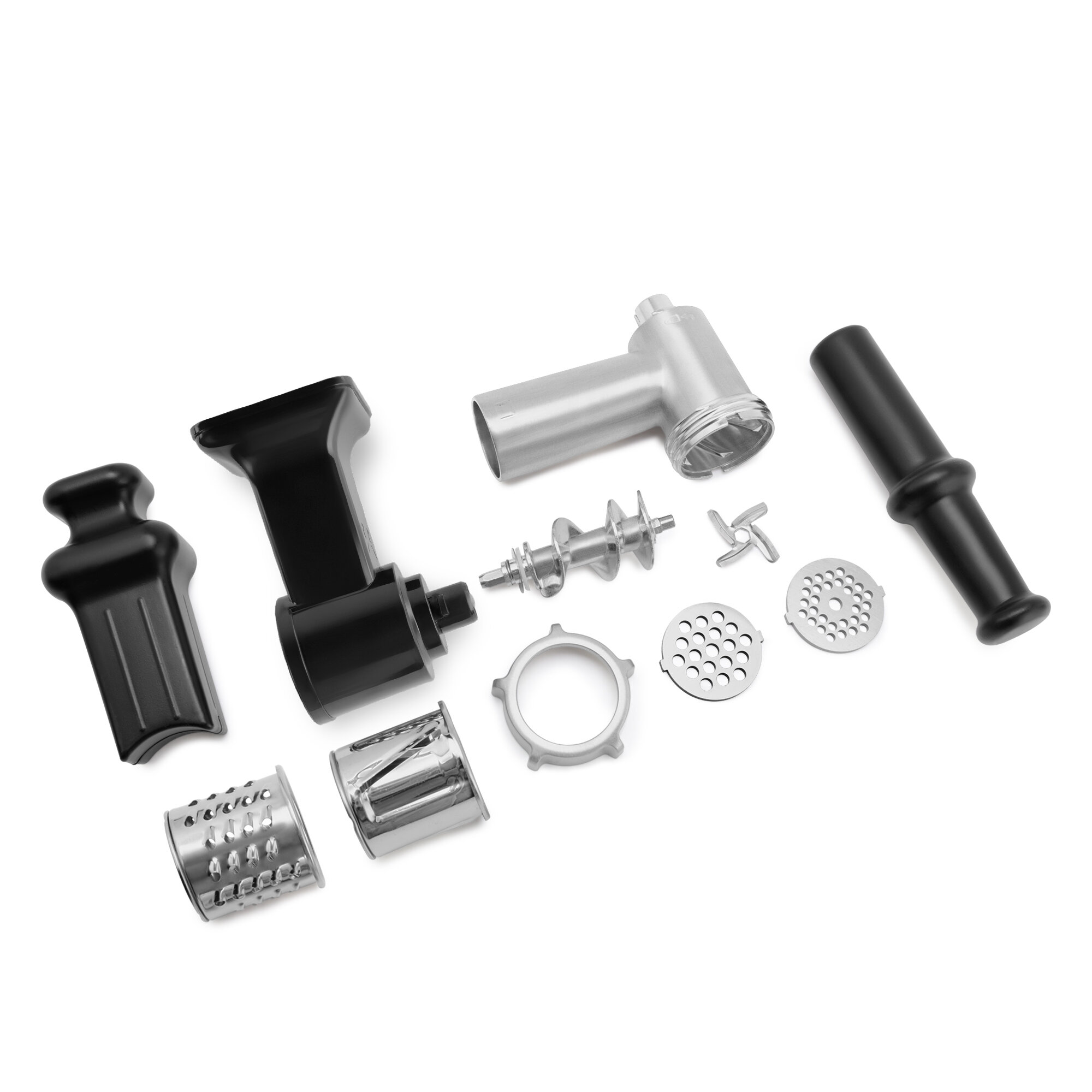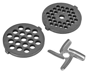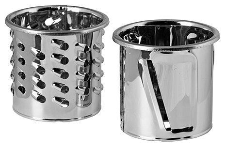 В комплектацию мясорубки входят две решётки с диаметром отверстий 5 и 7 мм, позволяющих приготовить фарш разной консистенции. Быстро замените насадку на барабан с тёркой или шинковкой, чтобы приготовить овощи для салата, рагу или натереть сыр для пиццы и пасты.