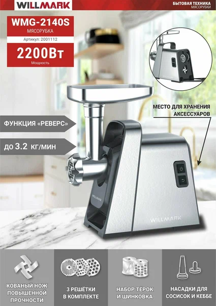 Технические характеристики электромясорубки Willmark WMG-2140S 2001112