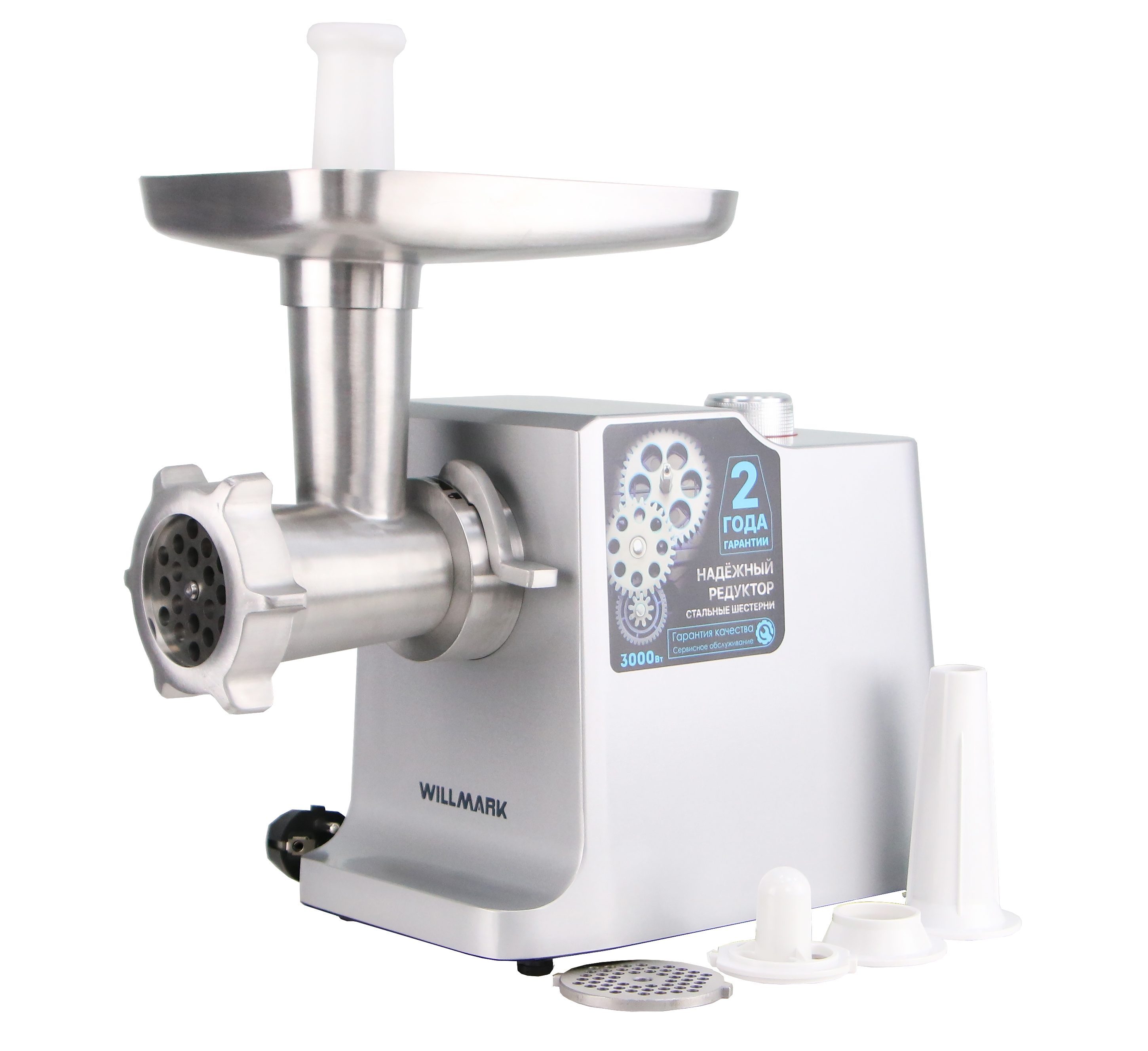 Электрическая мясорубка WILLMARK WMG-3080S с цельнометаллическим корпусом обладает расширенным набором функций и аксессуаров.