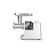 В комплект прилагаются руководство по эксплуатации, две решётки для мясорубки с пропускными отверстиями 5 и 8 мм., пластиковый толкатель, насадка для сосисок и насадка «КЕББЕ».