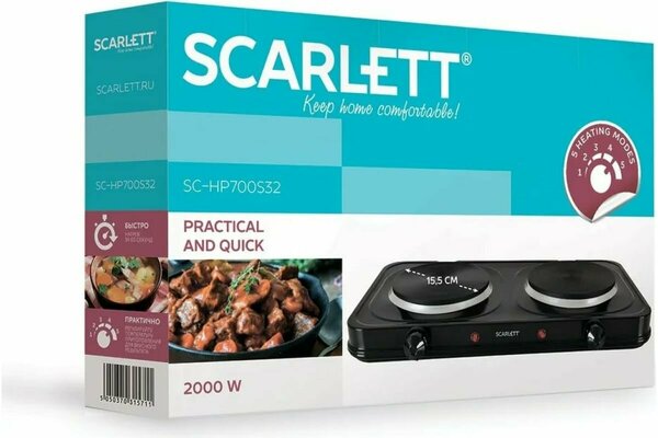 Электрическая плитка Scarlett SC-HP700S32 предназначена для приготовления и разогрева пищи.
