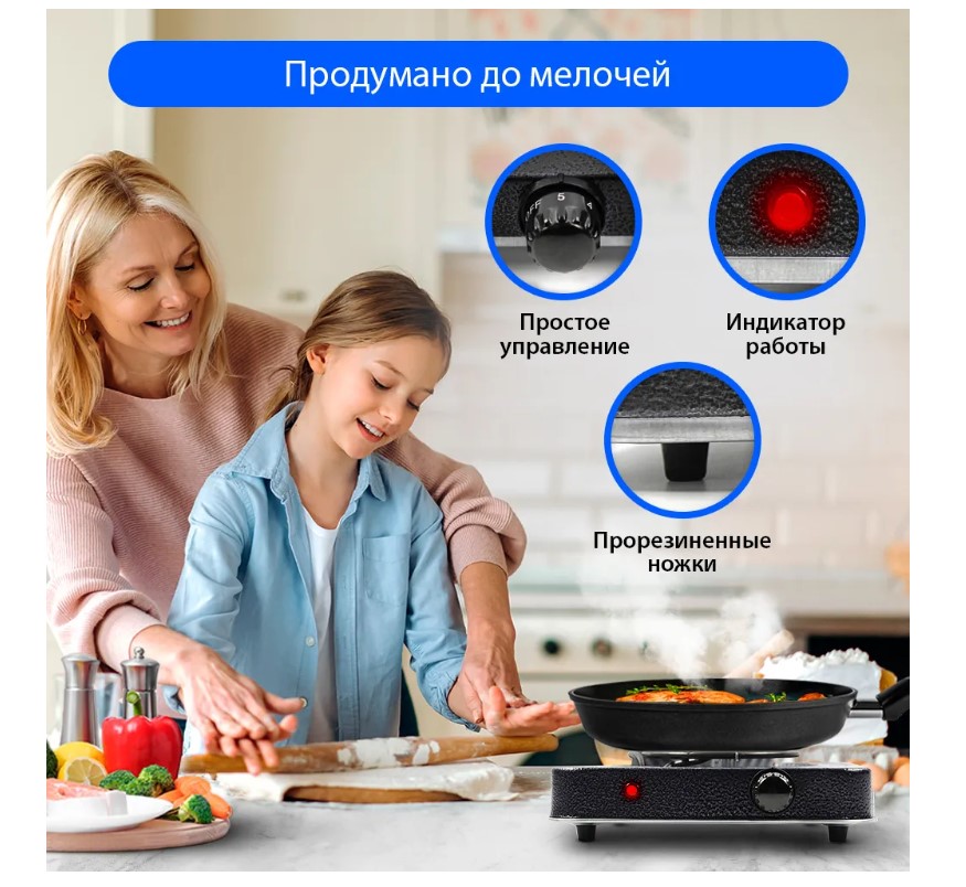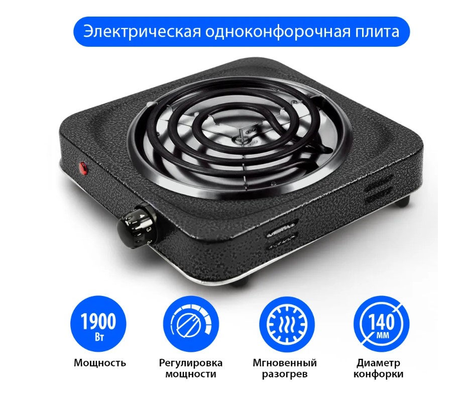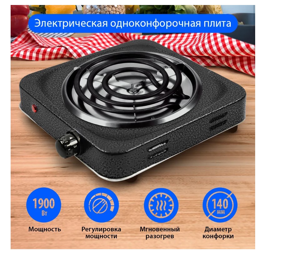 1-конфорочная электрическая плитка с диаметром конфорки 14 см и открытым нагревательным элементом из нержавеющей стали для работы в 3 режимах мощности. Отличное решение для быстрого приготовления пищи при отсутствии стационарной плиты. 3 режима нагрева позволяют легко отрегулировать температурный режим для приготовления любого блюда. Нагревательный элемент из нержавеющей стали обладает отличной теплопроводностью, имеет длительный срок службы, не боится влаги и легко чистится. Компактная электрическая плитка – это отличное решение для дачи или квартиры, где еще не закончен ремонт.