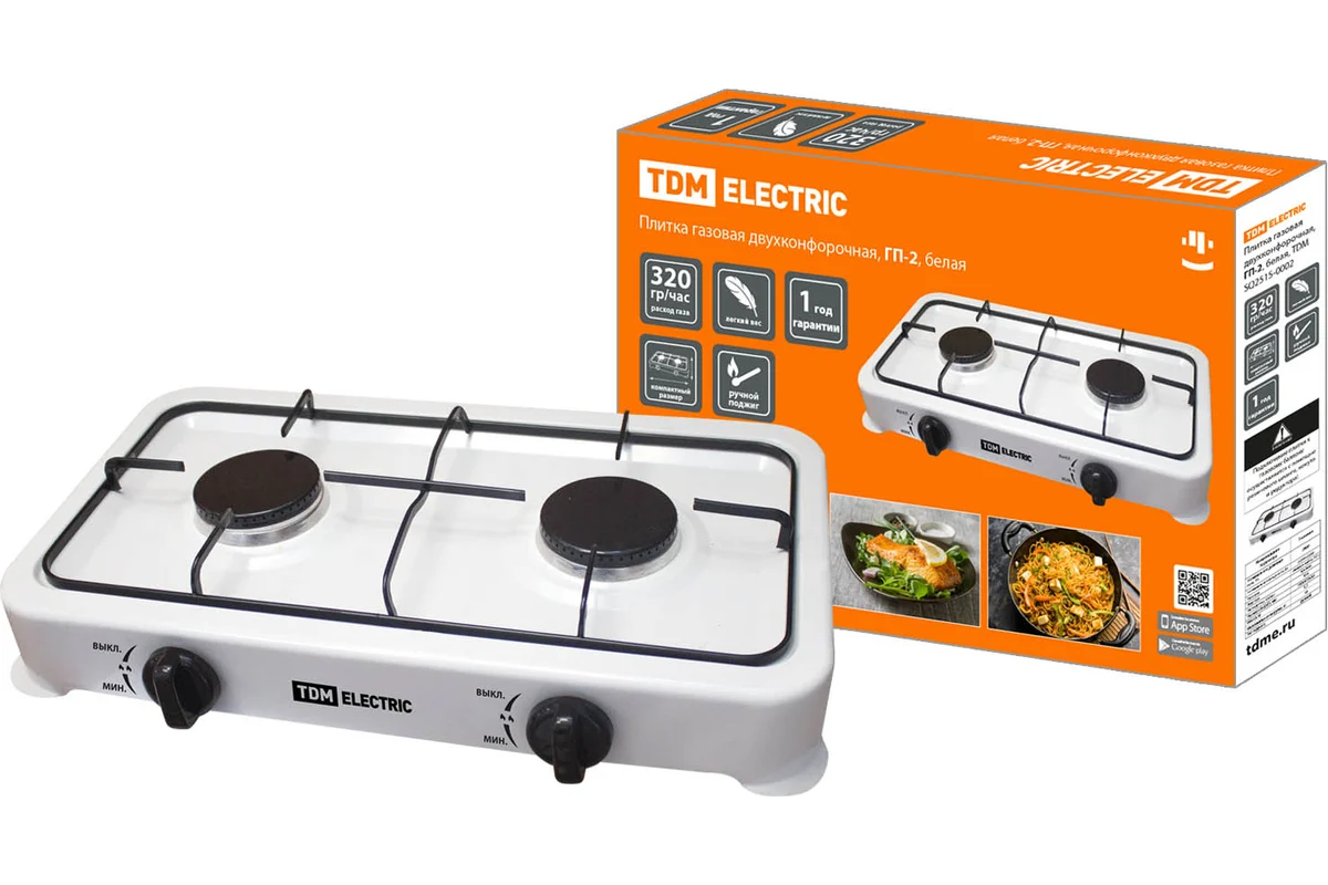 Газовая двухконфорочная плитка TDM ГП-2 белая SQ2515-0002 предназначена для приготовления и подогрева еды.