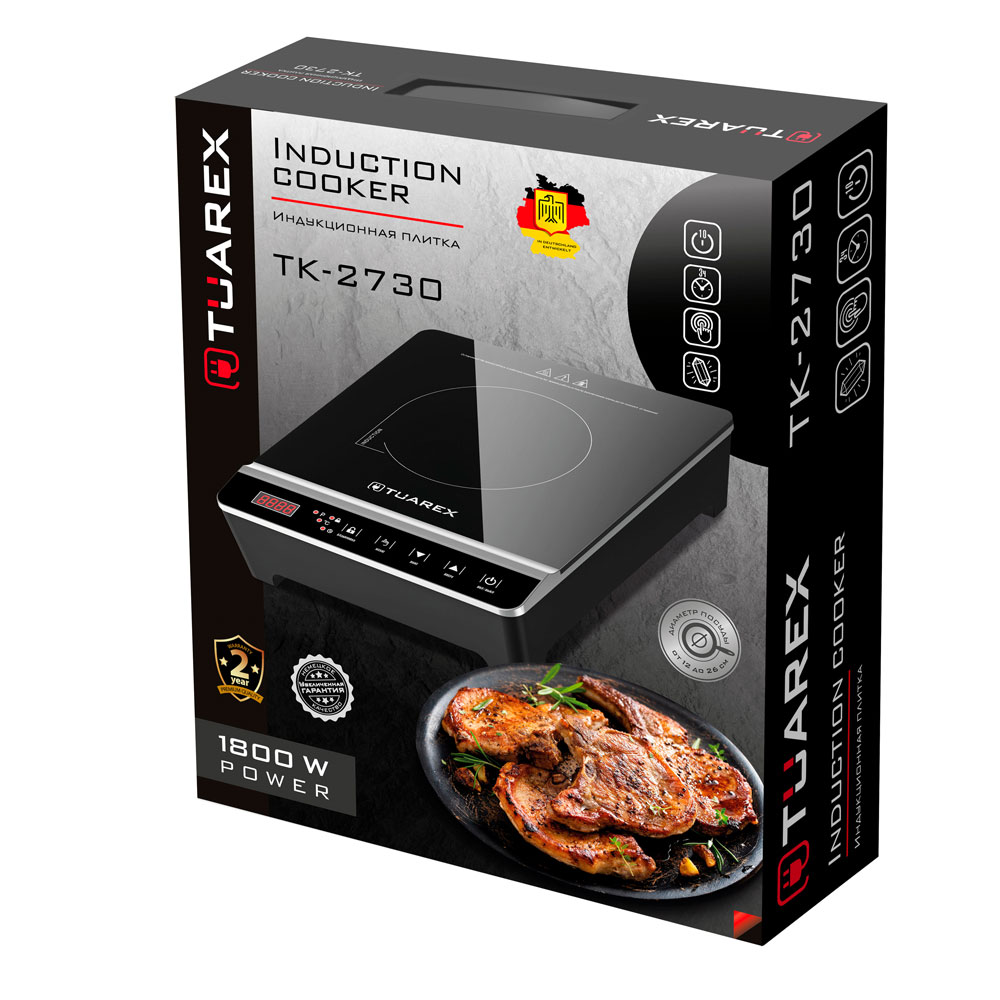 Индукционная электрическая плита TUAREX TK-2730 черного цвета представляет собой мощное и высокотехнологичное кухонное устройство. Ее мощность составляет 1800 Вт, обеспечивая равномерный и быстрый нагрев с диапазоном температур от 60 до 240 градусов.