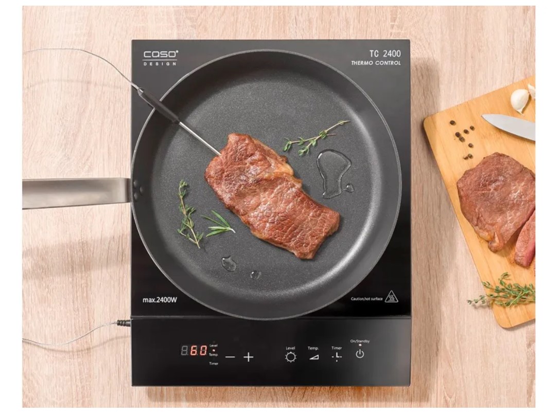 Жарка и приготовление с точностью до градуса благодаря инновационному термометру Thermo Control. Идеально подходит, например, для приготовления су-вид, поддержания температуры продуктов в горячем состоянии, точного прожаривания мяса и рыбы с помощью внутреннего датчика температуры.