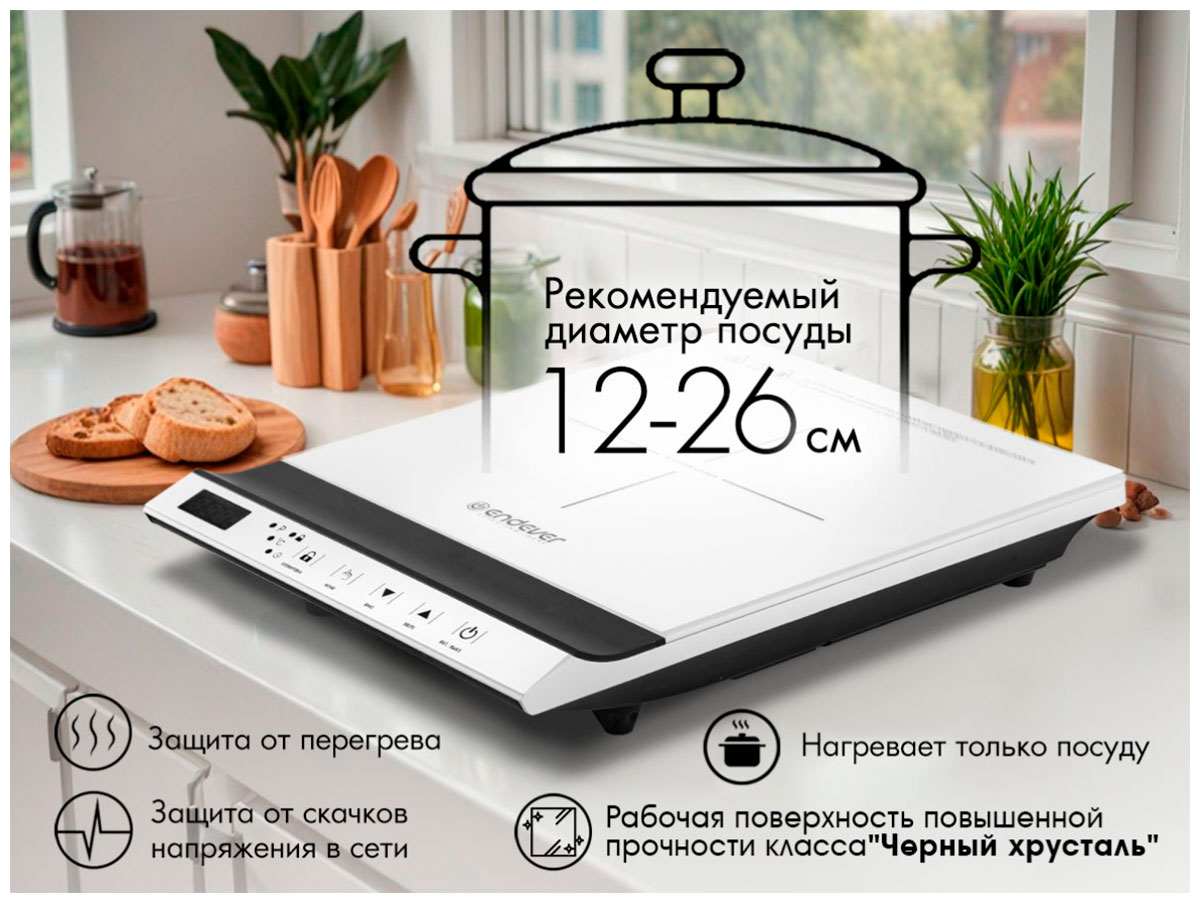 - Рекомендуемый диаметр посуды от 12 до 26 см