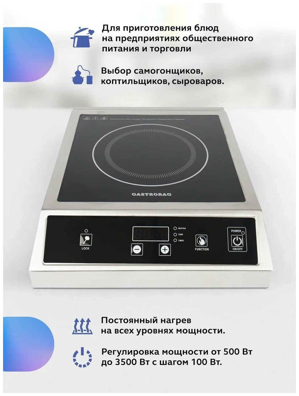 Плита электрическая индукционная без импульса Gastrorag TZ-JDL-C35A2 обладает целым рядом преимуществ, которые делают ее идеальной для самогоноварения. Настольная плитка имеет простое и удобное кнопочное управление.