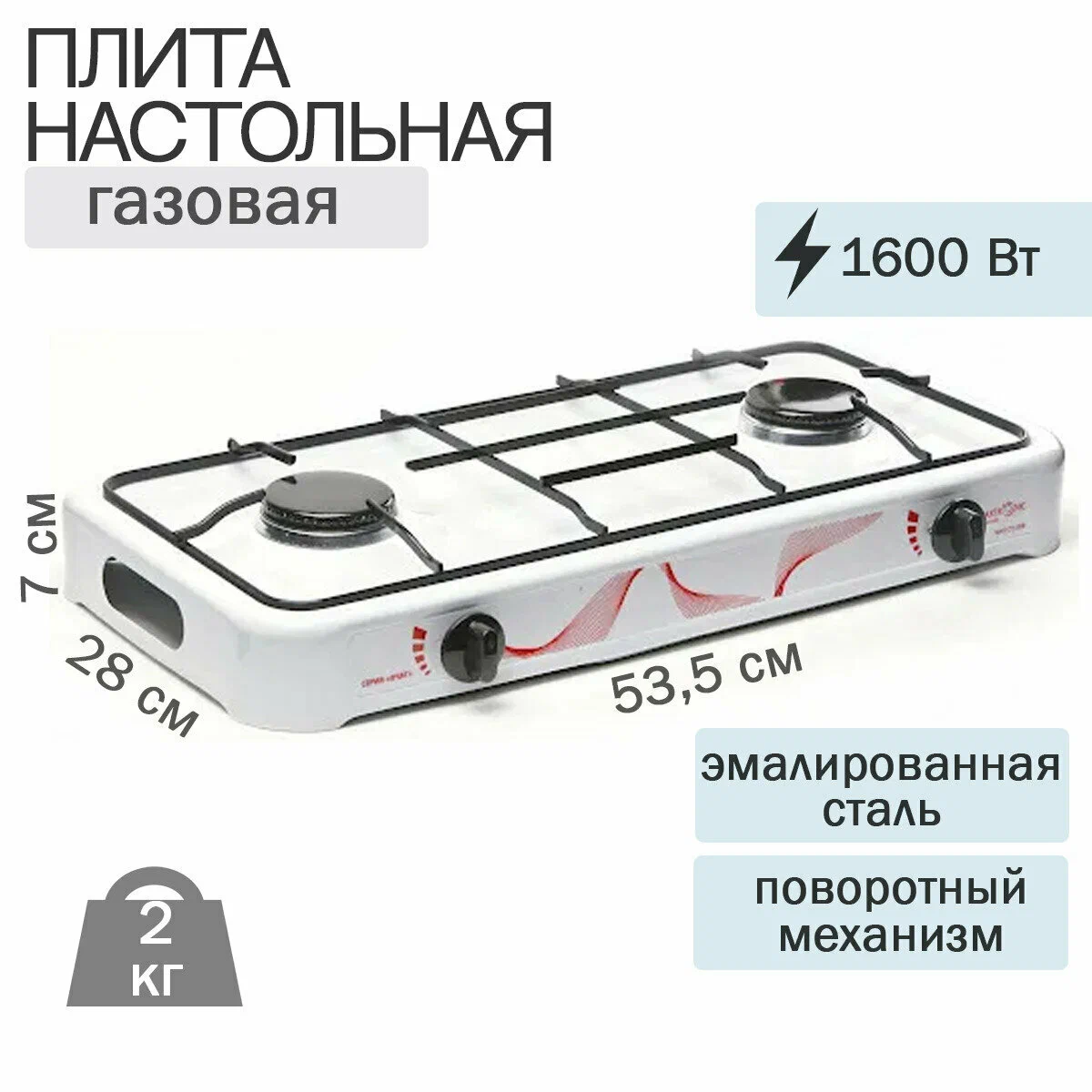 Плита газ. MAXTRONIC MAX-AO-002 белый, 53,5х28 см, 2 конфорки, 2газ, эмаль