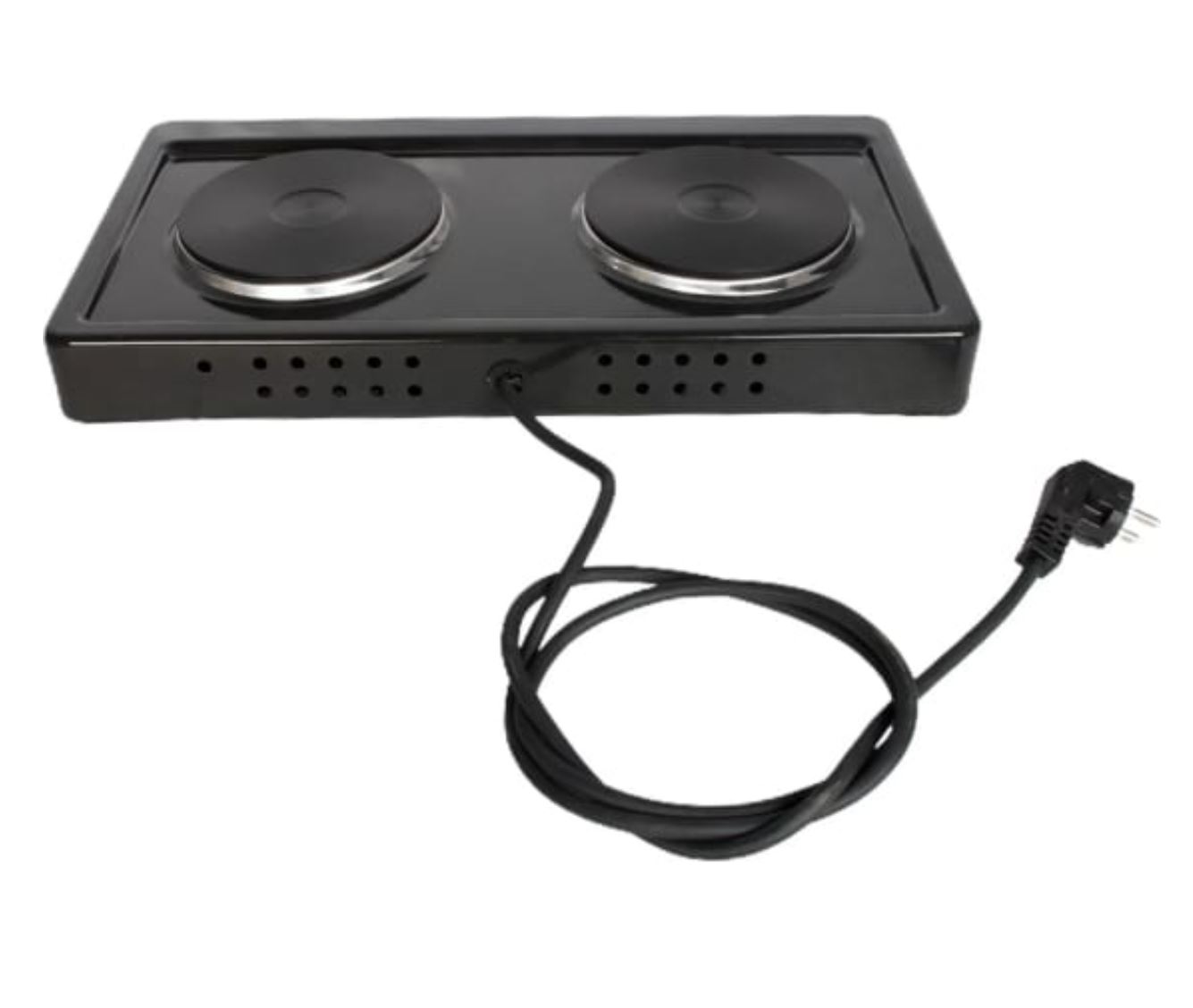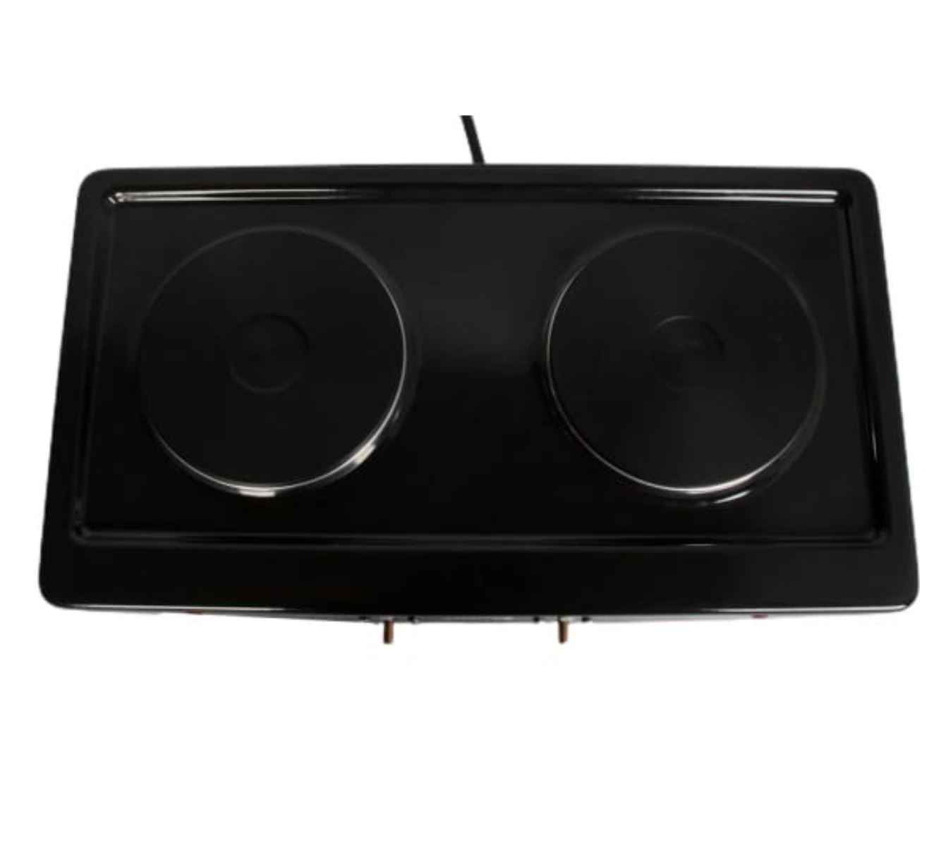 тип конфорок: чугунные; мощность каждой конфорки: 1 кВт, диаметр 14,5 см; бесступенчатое регулирование мощности; индикация включенного состояния электроконфорок; опорные ножки плитки оборудованы вкладышами противоскольжения; стеклоэмалевое покрытие; вес 4,5 кг