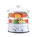 Общий объем пароварки составляет 5,5 литров и состоит из двух ярусов, что позволяет приготовить разнообразное количество блюд. А также имеет основание для воды, объемом 1 литр.