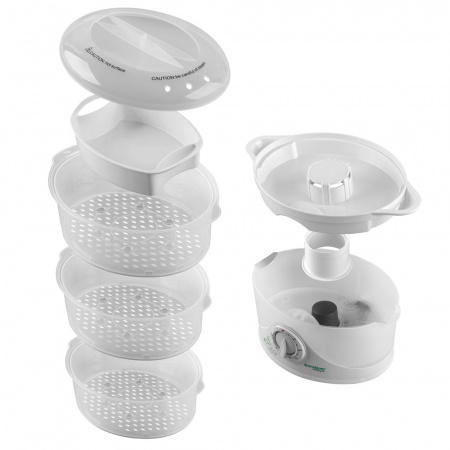 Пароварка оснащена тремя ярусами с общим объемом 9 литров. А благодаря мощности 1000 Вт, Вы сможете приготовить большое количество блюд за считанные минуты.