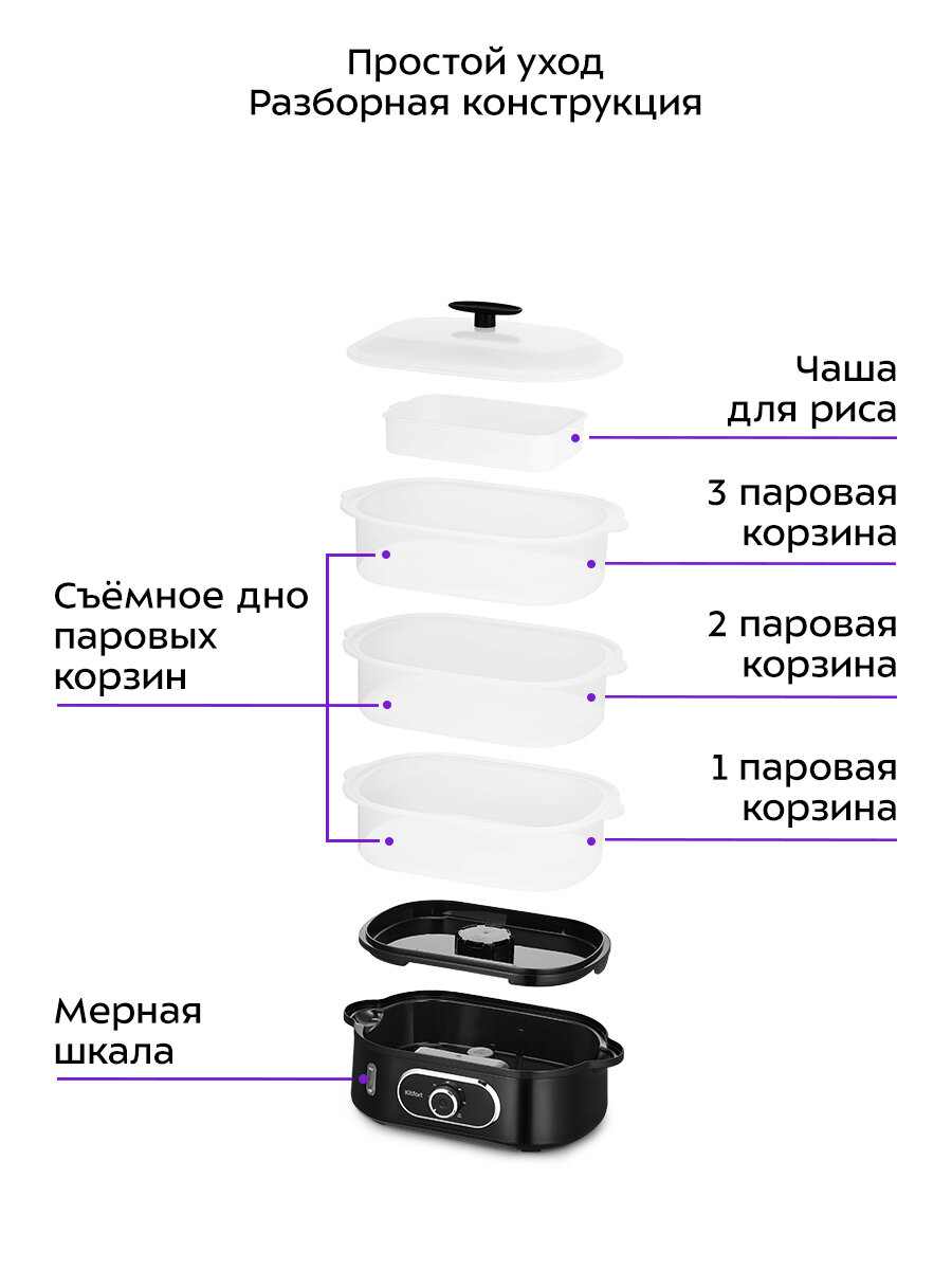 документация, контейнер для риса, крышка, паровая корзина - 3 шт