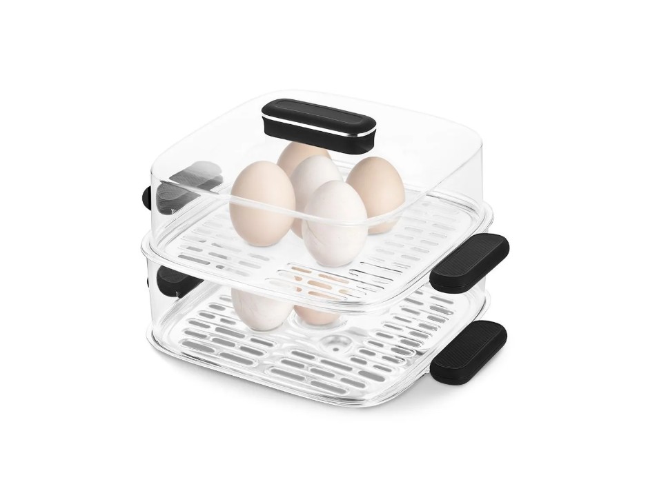 Пароварка оснащена двумя паровыми корзинами, что позволит приготовить обед или ужин из разных блюд. В паровых корзинах есть специальные отверстия, в которые удобно ставить яйца при их варке.